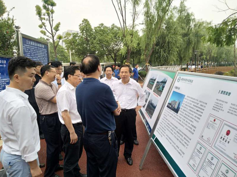 李干杰在项目现场一边观看展板、一边听取汇报、一边询问效果,他强调,城市黑臭水体治理也是生态环境部下一步主要战役之一,要积极修复水生态系统,彻底解决城市建成区黑臭水体问题。他还表示,黑臭水体整治、排污口整治、饮用水源保护工作是重中之重,要把生态、环保放在首要位置,坚持走生态优先、绿色发展之路。