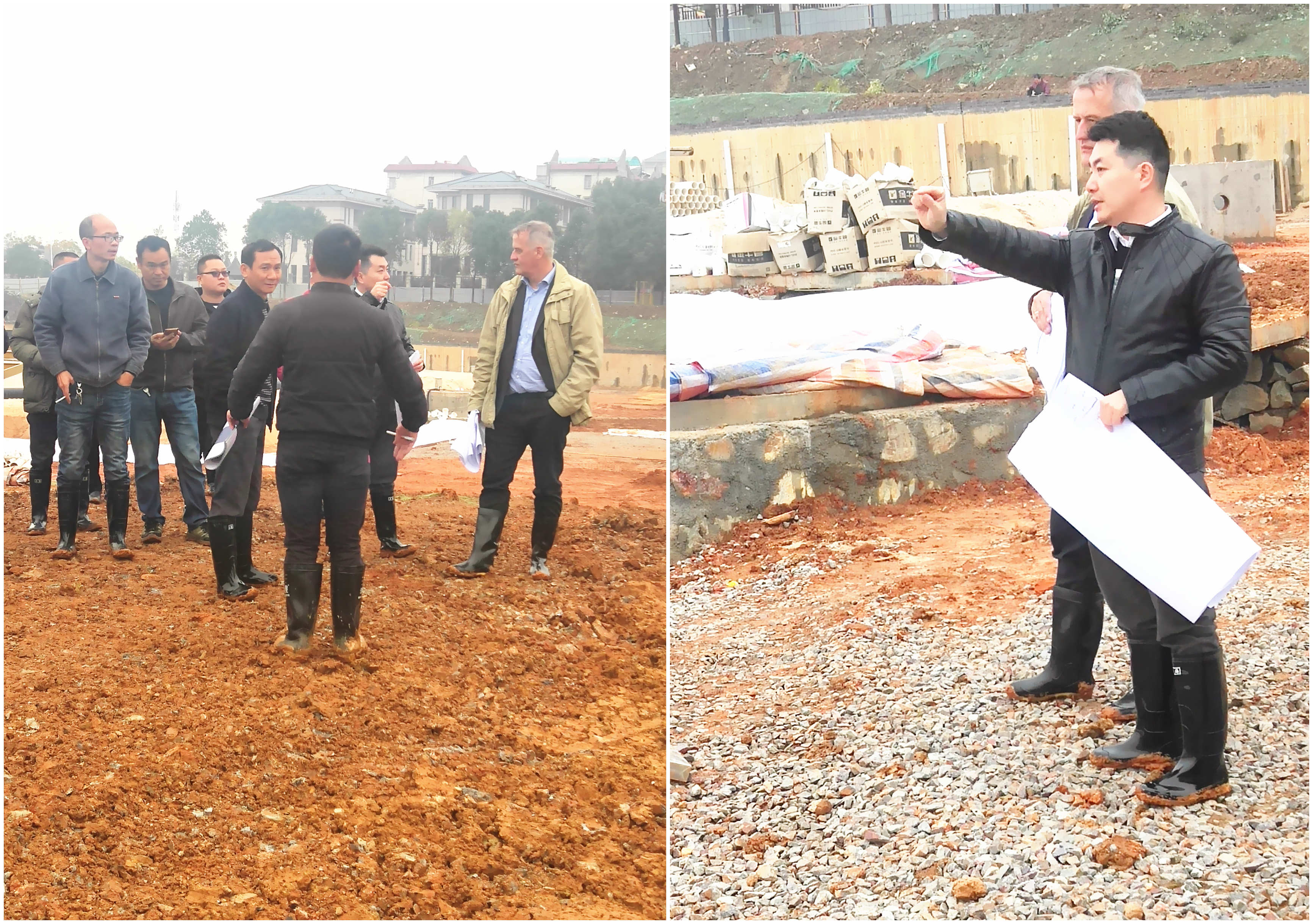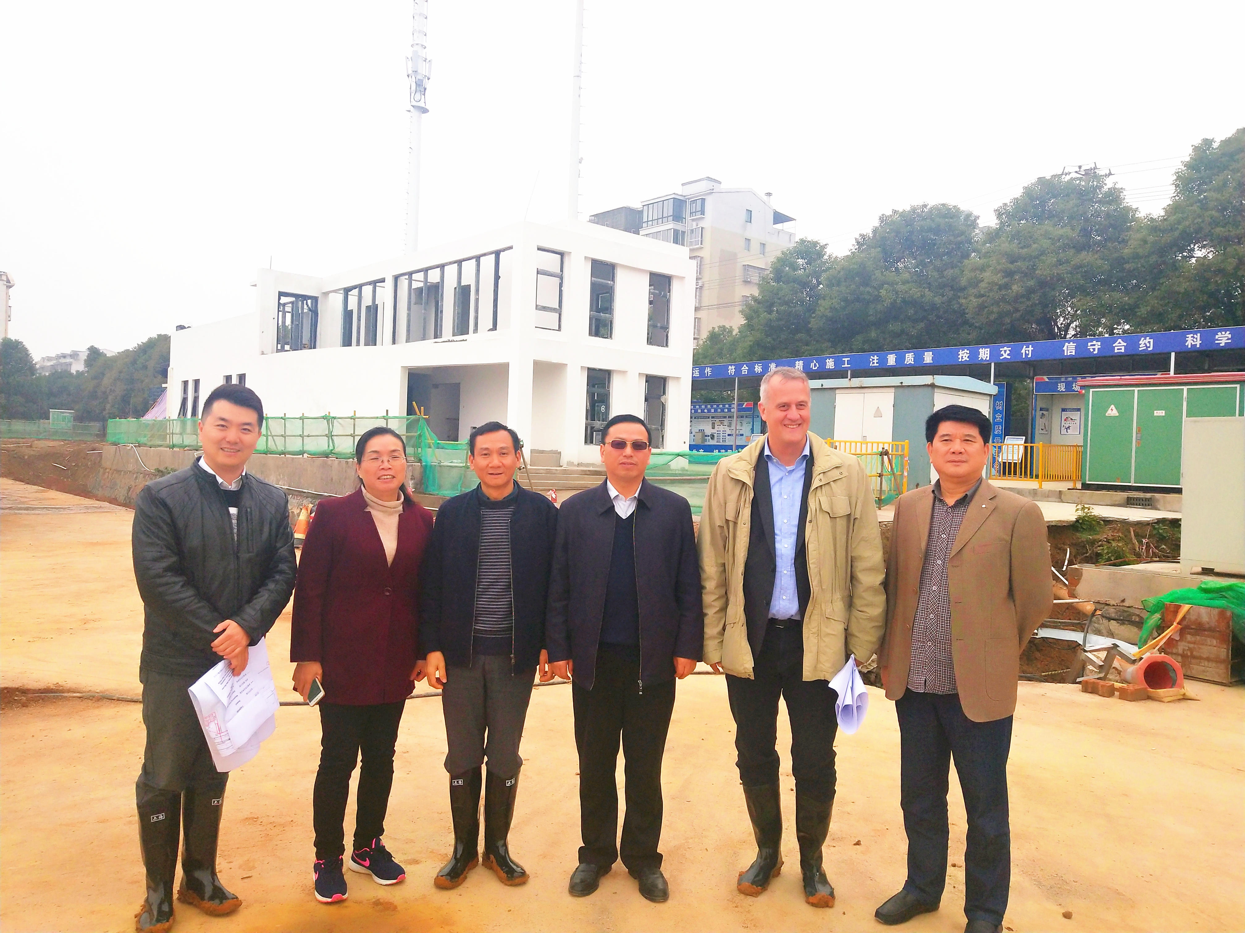 2018年11月20日,德国水治理专家彦斯·科鲁曼博士、岳阳市行政执法局局长张建辉、设施科科长郑建良、设施科副科长陈曼霞,岳阳规划勘测设计院总工程师鲁复查、园林景观室主任王迎春、给排水室主任颜昌本和监理单位总监理工程师彭送桥等领导莅临乐虎lehu国际官网环保承建的岳阳市蛇皮套和三大湖综合整治项目现场指导工作,项目经理刘建彬向来宾介绍了该项目的基本情况和施工进度。