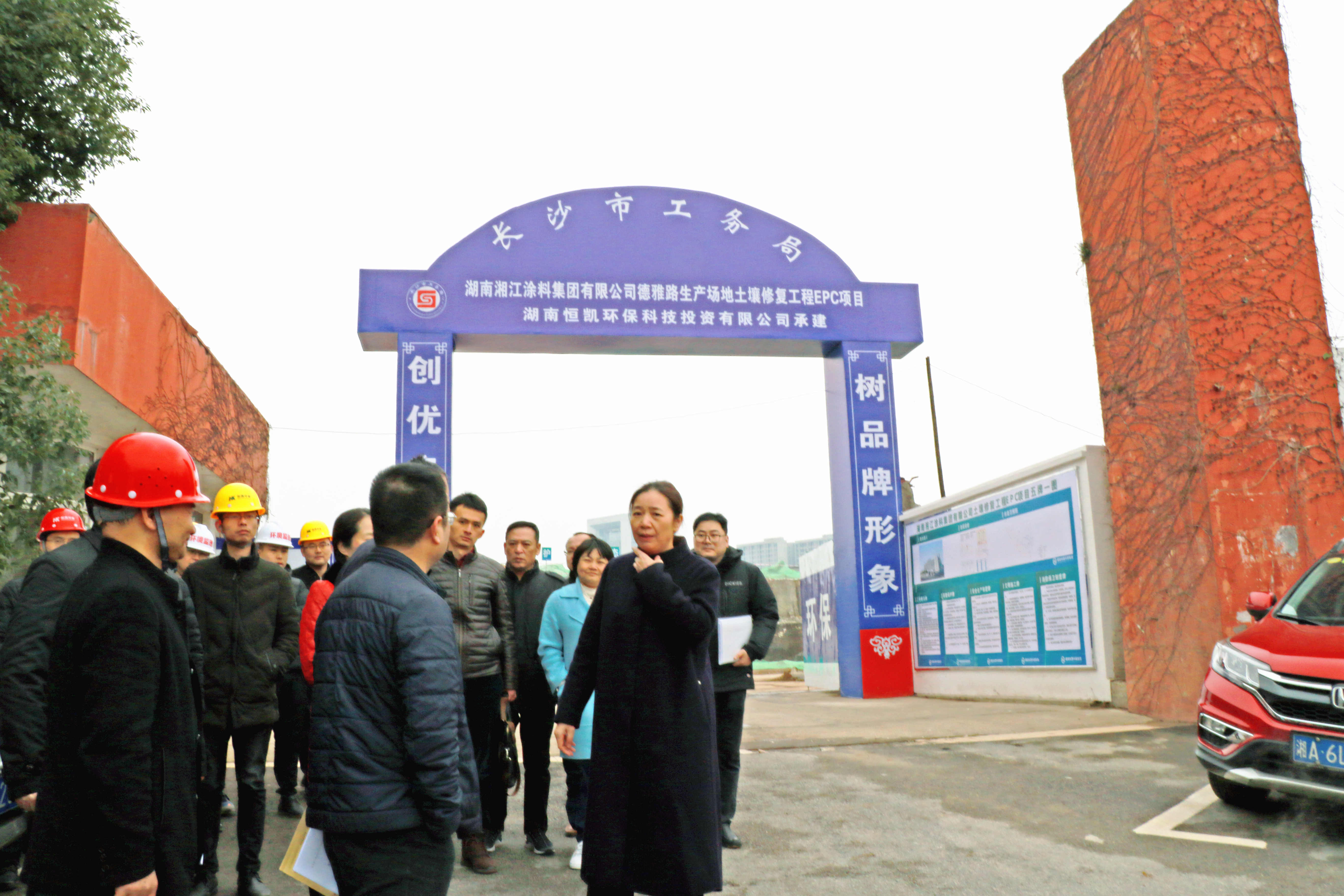 1月31日,长沙市人民政府副市长廖建华莅临乐虎lehu国际官网环保承建的湖南湘江涂料集团有限公司德雅路生产场地土壤修复EPC项目调研考察,并对项目一线员工表示慰问。湖南省机关事务局副局长刘亚楼,长沙市国土储备中心主任陈志敏,长沙市工务局局长席超波、副局长熊翠玲、项目负责人何缘,开福区环保局局长肖扬,乐虎lehu国际官网环保总裁蒋卫山等领导陪同考察。