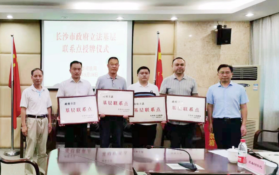 9月9日,长沙市人民政府批准同意湖南乐虎lehu国际官网环保科技投资有限公司等4家行业协会和企业,作为新增政府立法基层联系点。9月18日,长沙市司法局为新增的政府立法基层联系点进行授牌,市人大法制委主任委员、市人大党委会法工委主任周伟,市司法局党委委员、副局长杨建辉分别为4个政府立法基层联系点授牌。至此,长沙市政府立法基层联系点由3个扩充到7个。
