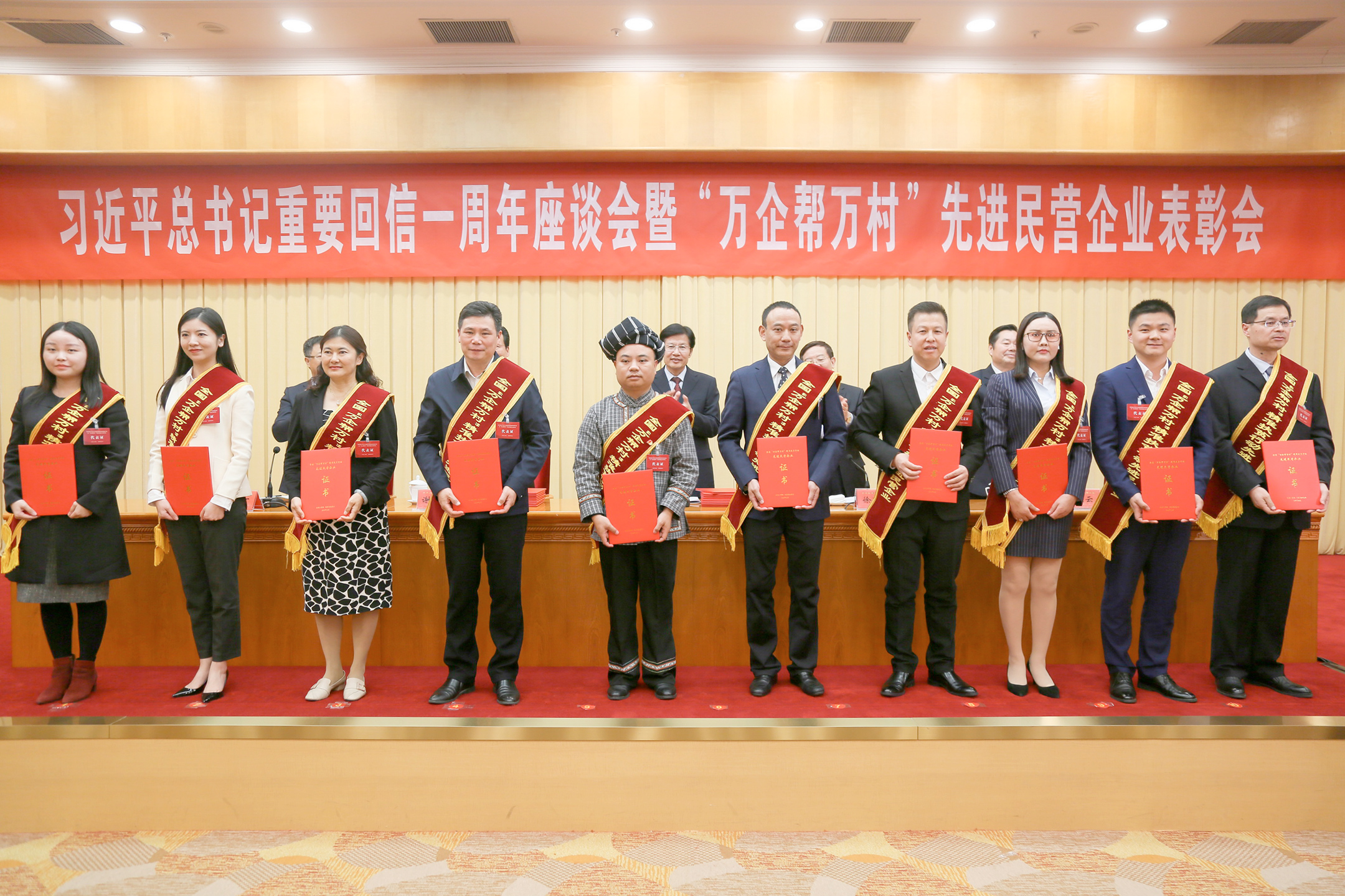 10月17日,全国工商联、国务院扶贫办在北京国谊宾馆召开习近平总书记重要回信一周年座谈会暨“万企帮万村”先进民营企业表彰大会,乐虎lehu国际官网环保被全国工商联、国务院扶贫办授予“全国‘万企帮万村’精准扶贫行动先进民营企业”荣誉称号,集团党委书记、副总裁王巨涛出席表彰大会并接受表彰。此次共表彰了99家民营企业,湖南省有五家企业受到表彰,乐虎lehu国际官网环保是长沙唯一一家获此殊荣的民营企业。